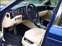 And like the Arabian, the Arnage T is beautiful to look at. It’s not as rakish as some of its contemporaries, but then again next to the R-R Phantom it’s as aerodynamically efficient as a Lamborghini. OK, so I stretched that one a bit. Still, I couldn’t help continually looking over my shoulder, catching a glimpse of its elegant sheetmetal from a new angle, crouching down low to the ground for a different perspective. Each view only reiterated my initial reaction; the Arnage T is a stunningly attractive automobile. From its wire mesh grille to its four round headlamps, across its strong shoulder lines to its classically formal C-pillars, and then cresting downward past its sculpted rear trunklid and tastefully integrated rear taillamps to its robust twin exhaust pipes, it’s a powerful statement of cultured good taste.
